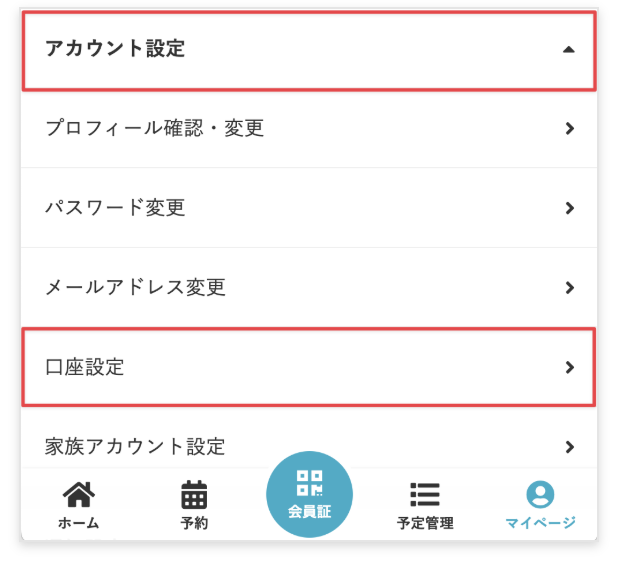 2.[アカウント設定]>[口座設定]をタップします。